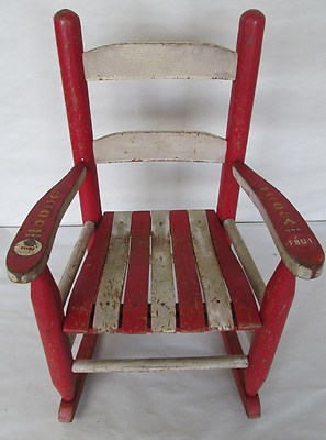 Title (ebay affiliate link): VINTAGE KIDS ROCKING CHAIR RED STRIPED SOLID WOOD FRAME CHILDRENS ROCKER