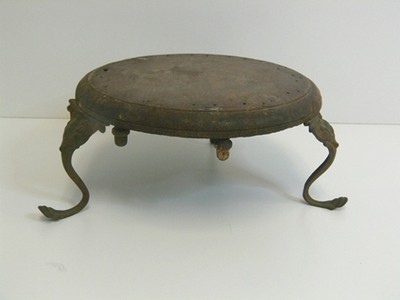 Title (ebay affiliate link): Vintage Rustic Wooden Stool with 3 Metal Ornate Feet