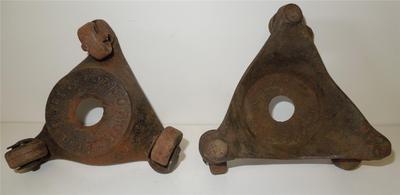 (2) Antique Industrial Cast Iron 3-Wheel Swivel Casters Dollies