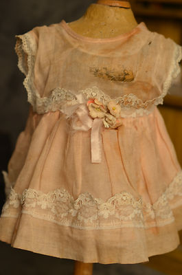 Title (ebay affiliate link): ~* PRETTY 7 1/2" EARLY ANTIQUE PINK Bisque DOLL DRESS WITH ANTIQUE LACE *~