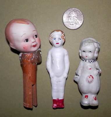 Title (ebay affiliate link): Vintage Antique Bisque Doll One Head Gued to Wood One Clown Girl One Japan? N/R