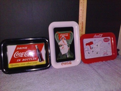 Three small Coca-Cola tip trays