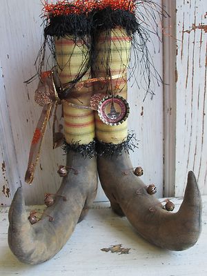 Title (ebay affiliate link): Primitive Halloween Witch Boot Tucks w/Striped Stockings~Sewmany Stitches