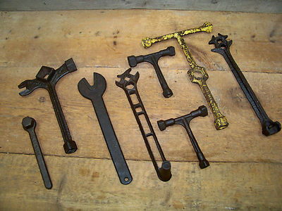 Title (ebay affiliate link): 8 Antique Iron Tractor / Horse Drawn Farm Machinery Wrenches ~Rustic Barn Decor
