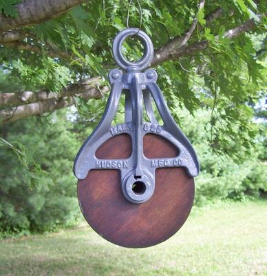 Title (ebay affiliate link): Antique Cast Iron & Wood Hudson Barn Hay Trolley Pulley Old Vintage Farm Tool