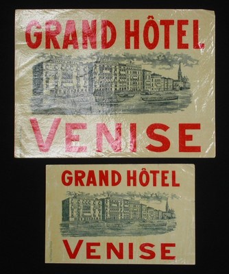 2 Original Old Luggage Labels Grand Hotel Venise travel vintage antique