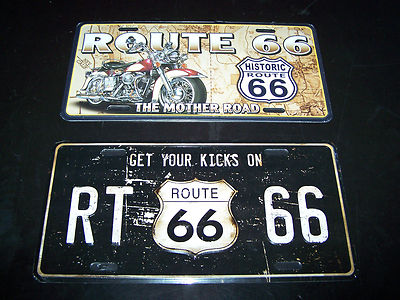 Title (ebay affiliate link): Pair of Route 66 Indian Harley Motorcycle License Plates Vintage Look Station
