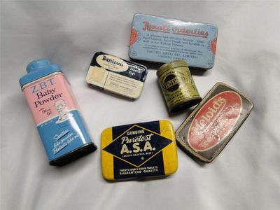 Title (ebay affiliate link): GOOD LOT VINTAGE ADVERTISING TINS BABY POWDER ASA REXALL AND MORE ++++