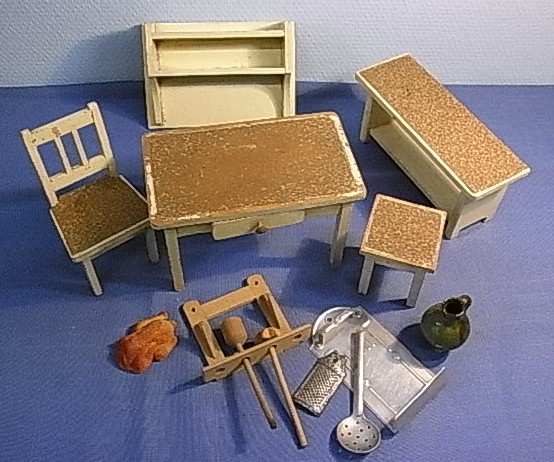 LOT KITCHEN FURNITURE DOLLHOUSE ANTIQUE GERMAN Ki5