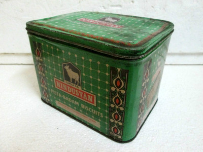Title (ebay affiliate link): Vintage Rare Old Original Adv. Hindustan Biscuits Tin Box Litho Cow Print Box