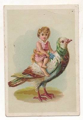 Title (ebay affiliate link): Boy Riding a Giant Pigeon, Morning Dove Bird Antique Exaggeration Victorian Card