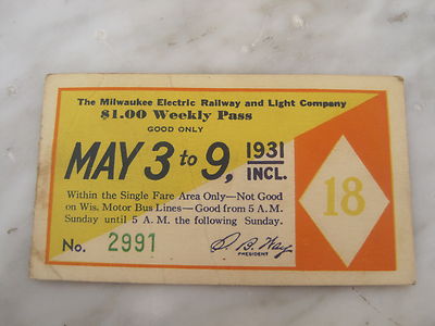 Title (ebay affiliate link): 1931 MILWAUKEE ELECTRIC RWY & LIGHT CO MAY 3 TO 9 WEEKLY PASS