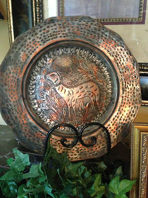 Antique Hand Hammered & Etched Copper Plate