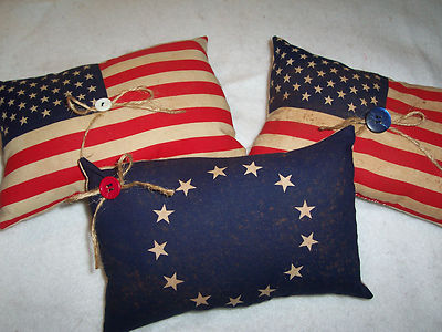 Title (ebay affiliate link): Primitive Americana Fabric Flag Pillows Ornies Shelf Sitters 4th Of July Set of3