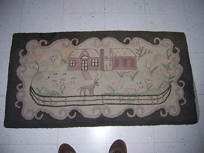 Title (ebay affiliate link): Antique Pimative Hook Rug w/ Birds Deer Cow Flowers House Valley of Virginia
