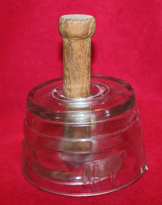 Antique Wood & Glass Butter Press Cow Design Large Pressed Glass 5.5" MW