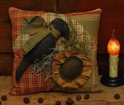 Title (ebay affiliate link): SMALL PRIMITIVE SUMMER FALL SUNFLOWER CROW CUPBOARD TUCK QUILTED PILLOW