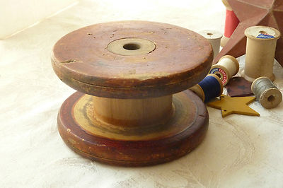 Title (ebay affiliate link): Antique Large Wooden Spool Bobbin Wire Industrial Folk Art Primitive - RED STAIN