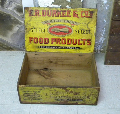 E.R. Durkee & Co's Food Products Antique Wooden Box with Lid - 00030