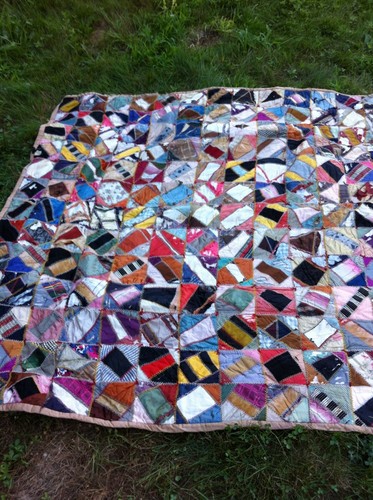 Antique Vintage Crazy Quilt Cutter Stacker Quilt Silk Satin Embroidery