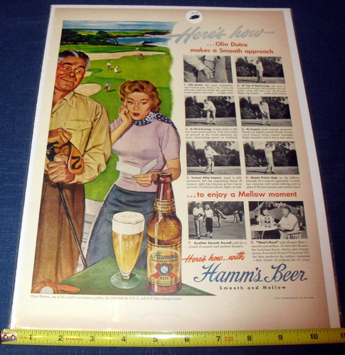 Title (ebay affiliate link): 1949 HAMM'S BEER GORGEOUS COLOR MAGAZINE ADVERTISEMENT GOLFER OLIN DUTRA 72513