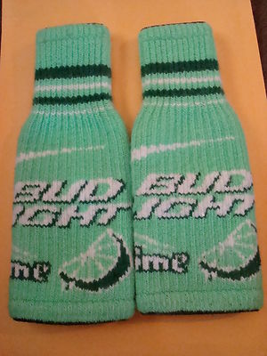 NU BUDWEISER BUD LIGHT LIME BEER ADVERTISING KNIT BOTTLE HOLDER COZY SOCK 2 LOT