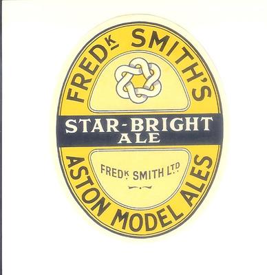 FRED SMITH'S BEER LABEL ASTON MODELBIRMINGHAM BREWERY STAR BRIGHT PRE 1965