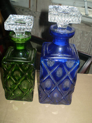 Title (ebay affiliate link): PAIR OF PRISTINE ART DECO ERA DECANTERS- COBALT AND GREEN CUT GLASS- STUNNING