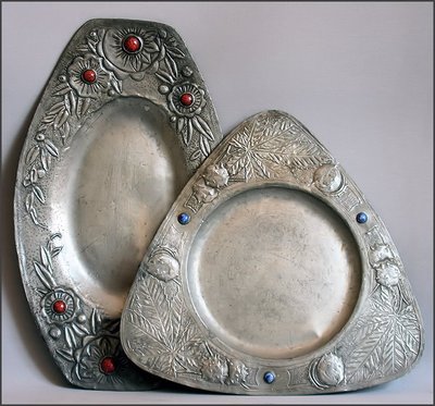 ANTIQUE 19th.C ART NOUVEAU FRENCH PAIR OF DISHES WITH STONES
