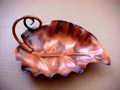 VINTAGE GREGORIAN HAND TOOLED SOLID COPPER LEAF NUT OR MINT TRAY