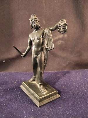 Title (ebay affiliate link): Bronze figurine 4.5" Perseus w head of Medusa nude sword in hand antique black