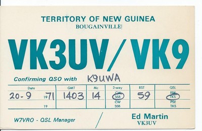 QSL 1971 Bougainville New Guinea radio card
