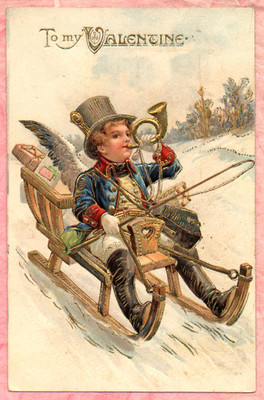 Title (ebay affiliate link): SUPER PFB GOLD EMBEL VALENTINE GREETING Winged Cupid Postman ORNATE SLED PC