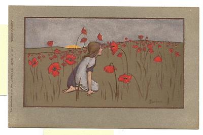 Title (ebay affiliate link): SYBIL BARHAM - Girl in Field of Poppies ca. 1909 - Faulkner Ser. 701A