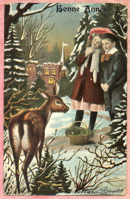 Title (ebay affiliate link): CHILDREN Youths COME ACROSS DEER Friend IN THE WOODS Pretty Vintage Postcard
