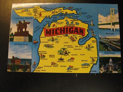 Postcard Michigan with Map of Michigan