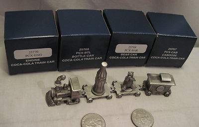 Title (ebay affiliate link): Coca-Cola Pewter Miniature Train Set 1995 Bottle Bear Caboose Engine USA