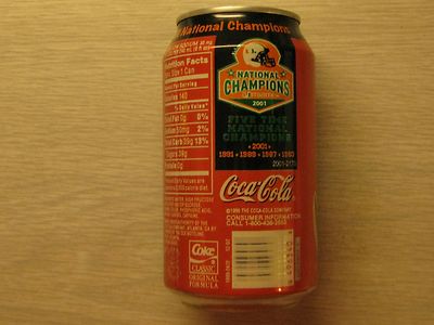Title (ebay affiliate link): Unopened 2001 Miami Hurricanes National Champion Coca Cola Coke Can Rare Limited