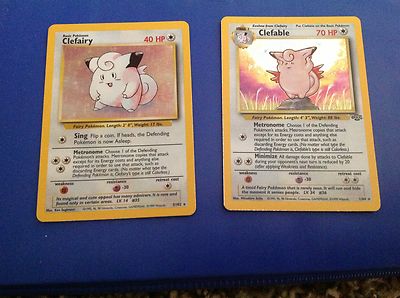 Title (ebay affiliate link): Rare Holographic Clafairy and Holographic Clefable Pokemon Cards!