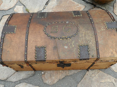 Title (ebay affiliate link): 1700S COLONIAL STAGECOACH "SG" LEATHER-HIDE WOOD BLACKSMITH-HANDMADE-NAILS TRUNK