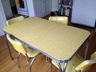 Title (ebay affiliate link): Vintage Formica Dinette Set + Leaf (Table + 4 Chairs )