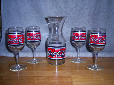 Title (ebay affiliate link): Vintage, Rare Coca-Cola Carafe & 4 Stemmed Glasses