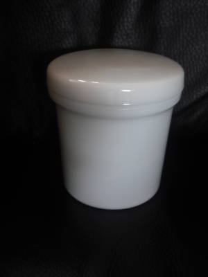 COLLECTABLE RETRO OLD MILK GLASS CHEESE JAR WITH LID