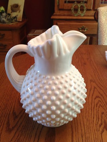 FENTON HOBNAIL WHITE MILK GLASS Picture 10" Tall . MINT!