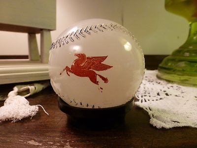 VINTAGE MOBIL OIL DETROIT TIGERS MILK GLASS BASEBALL BANK Pegasus-NICE!