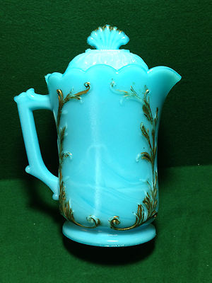 Vintage Blue Slag Milk Glass Gilt Floral Accents Lidded Creamer