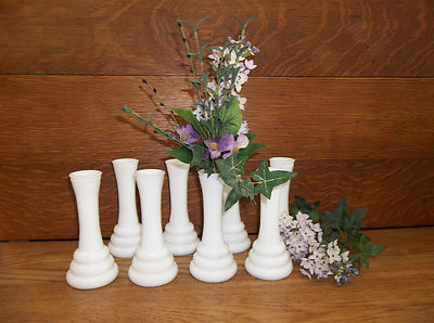 Title (ebay affiliate link): 8 Vintage Milk Glass ART DECO Mid-Century Wedding Bud vases! ~Darling~