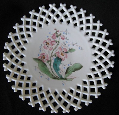 Vintage White Milk Glass Floral Cakeplate Woven Cake Plate Painted Flowers