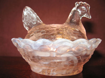 Title (ebay affiliate link): pink and milk slag glass salt celt hen chicken on nest basket dish rooster white