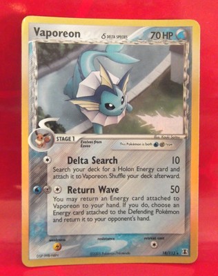Title (ebay affiliate link): Pokemon Card EX Delta Species Holofoil Rare Vaporeon 18/113